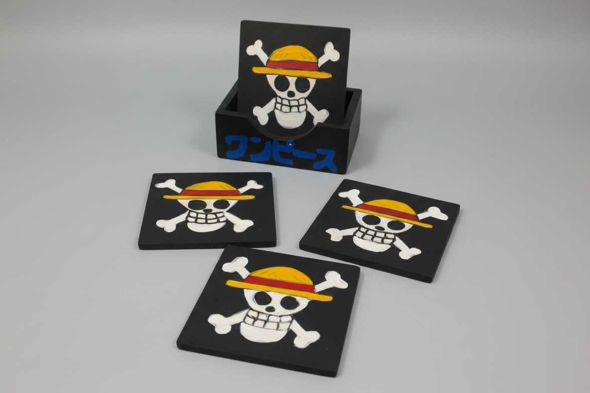 Luffy Pirate Flag 5-Piece Coaster Set (Reversible)